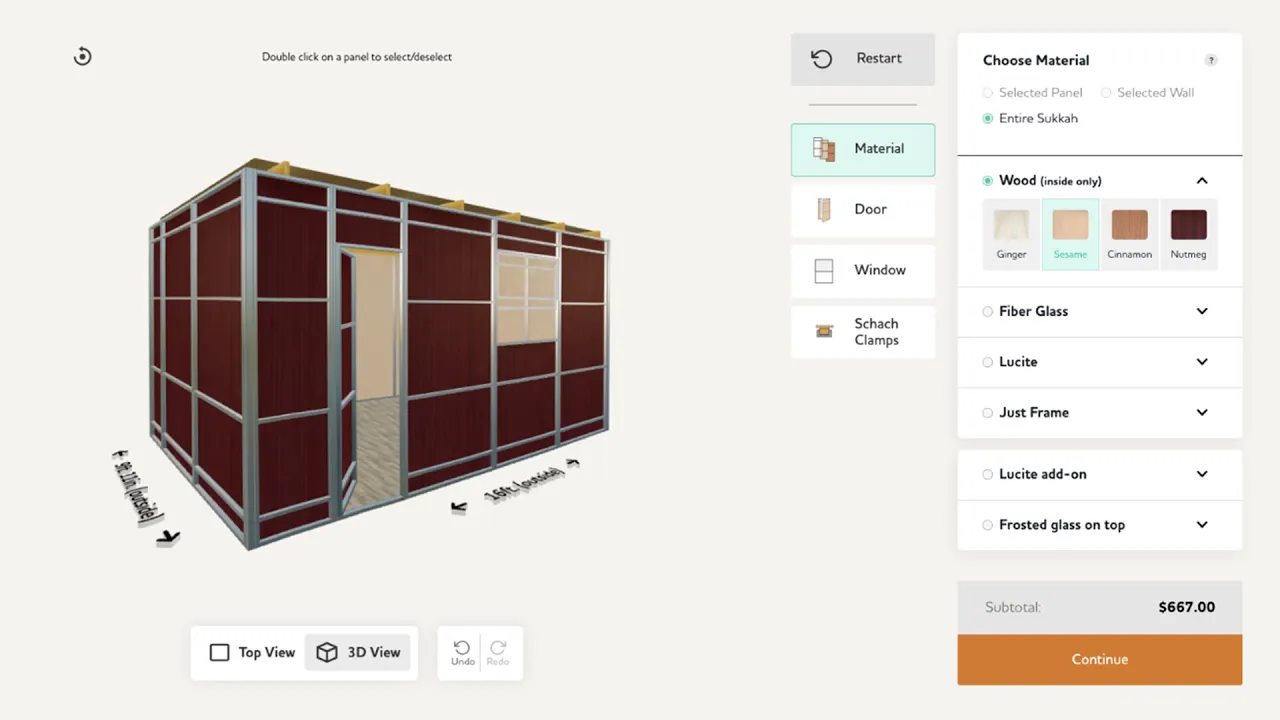 When your sukkah needs are specific, a standard sukkah just won’t do the trick. Create your very own Leiter’s sukkah. Choose from a variety of sizes, shapes and colors. Get the custom sukkah that you’ve always wanted.
